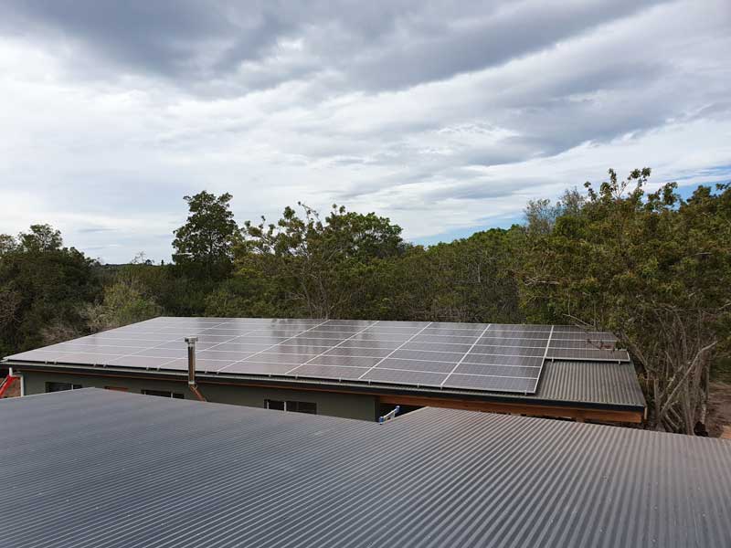 The available roof for the PV solar array was separate to the specially constructed room used to house the solar DC equipment and the AC DB Box. Trenching and conduits needed to be put in place for the DC cables.