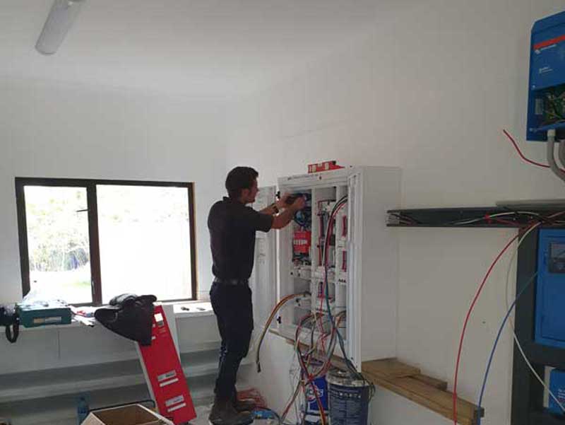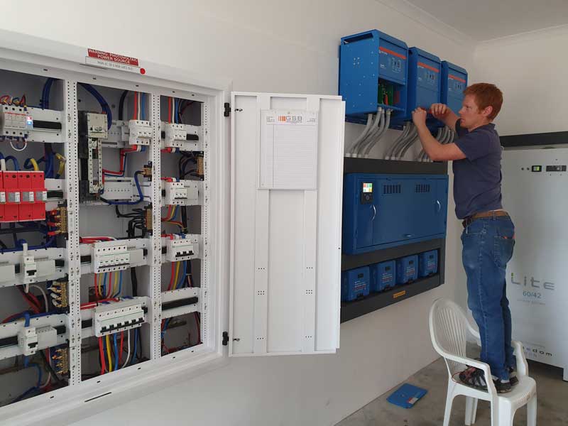 Specialized Solar Systems was also contracted to provide the design, supply and install the AC DB Box (built by George Switchboards). The AC DB box was designed and manufactured as a split DB Box with “essential” and “non-essential” loads. with the 3 phase Victron solar PV supplying power to the “essential” loads. The home automation system is connected and supplied through the “essential” loads.