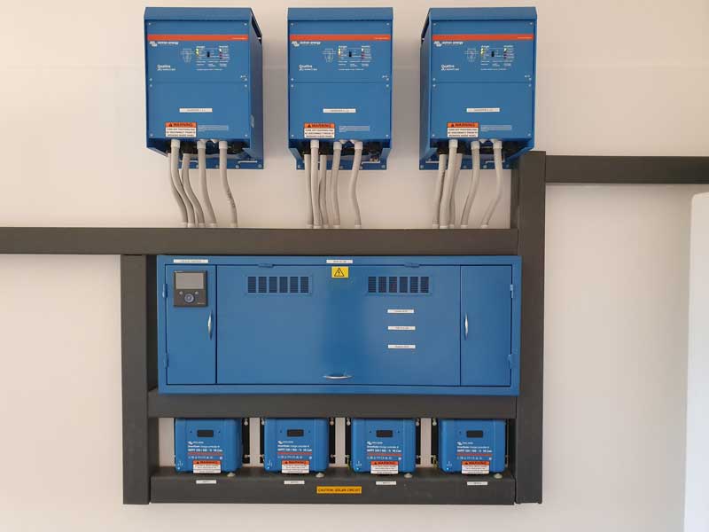 - 3 x Victron 10kVA Quatro inverter/chargers 10 000 140-100/100 230V VE.Bus (30kVA 3 phase – 10kVA per phase)