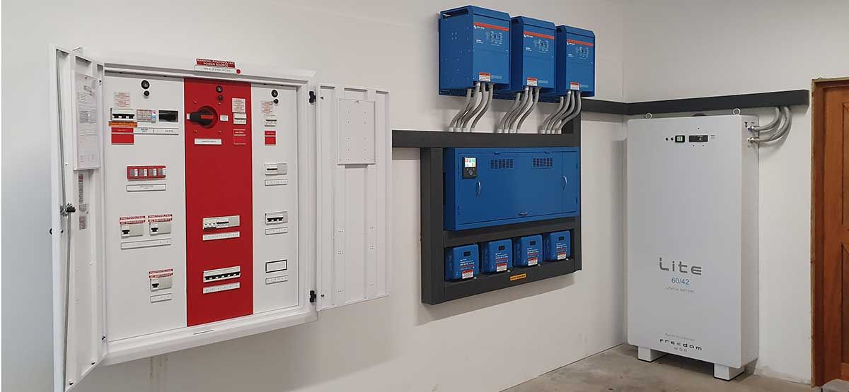 Due to the location challenges, Specialized Solar Systems had to devise and manufacture a rigging device to safetly off-load and securely place the large 750kg Freedom Won battery – adhering to all safety regulations on site.