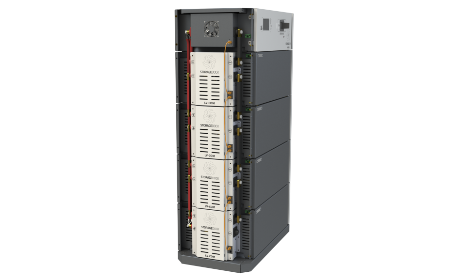 The Storagedock LV-Com batteries feature a modular design, allowing you to increase your energy system’s capacity over time. For larger requirements, up to four stacked units can be connected in parallel to achieve a total capacity of up to 393.6 kWh.