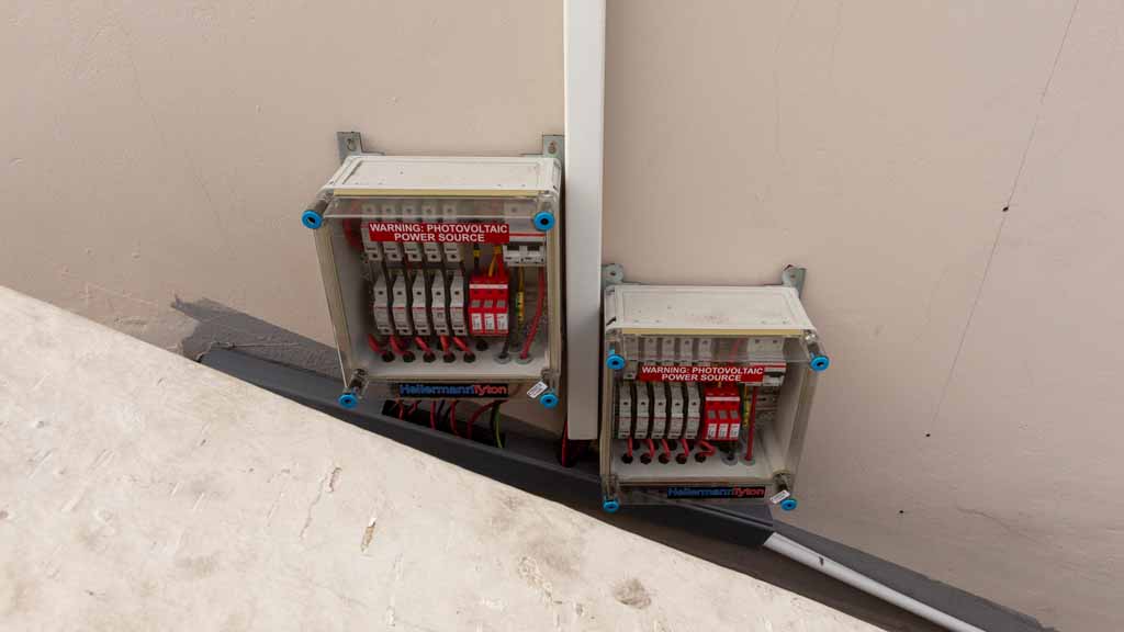 - 2 x 5way Hellerman and Tyton DC solar combiner boxes with built in 1000V DC fuses and Surge Protection.